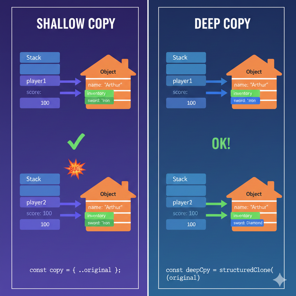 The root of this evil lies in how JavaScript (and many other languages) handles memory, leading to the crucial distinction between a Shallow Copy and a Deep Copy.