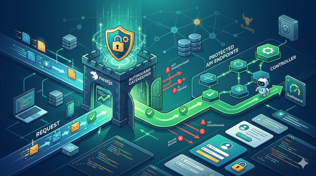 In NestJS, that gatekeeper is the AuthGuard.